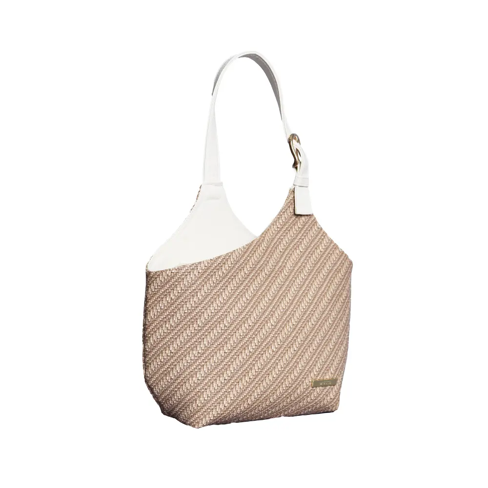 Su forma asimétrica y su mezcla de texturas aportan un toque original y sofisticado, ideal para quienes buscan marcar tendencia sin esfuerzo. El asa ancha y cómoda asegura un agarre firme, perfecta para el ritmo dinámico del día a día, mientras que su estructura espaciosa permite llevar lo esencial con estilo, sin perder la ligereza. Una pieza única pensada para mujeres con personalidad.