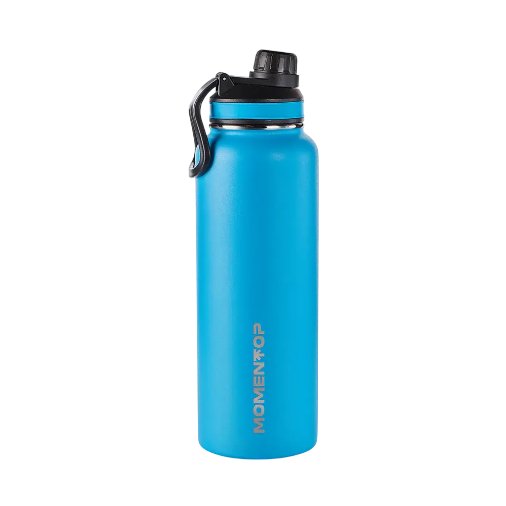 Con una construcción de alta calidad, esta botella presenta una tapa de cierre hermético con una boquilla, ideal para mantener tus bebidas a la temperatura perfecta durante horas, mientras que su asa superior integrada facilita un transporte cómodo y seguro, convirtiéndolo en un accesorio práctico y duradero para el uso diario o actividades al aire libre.