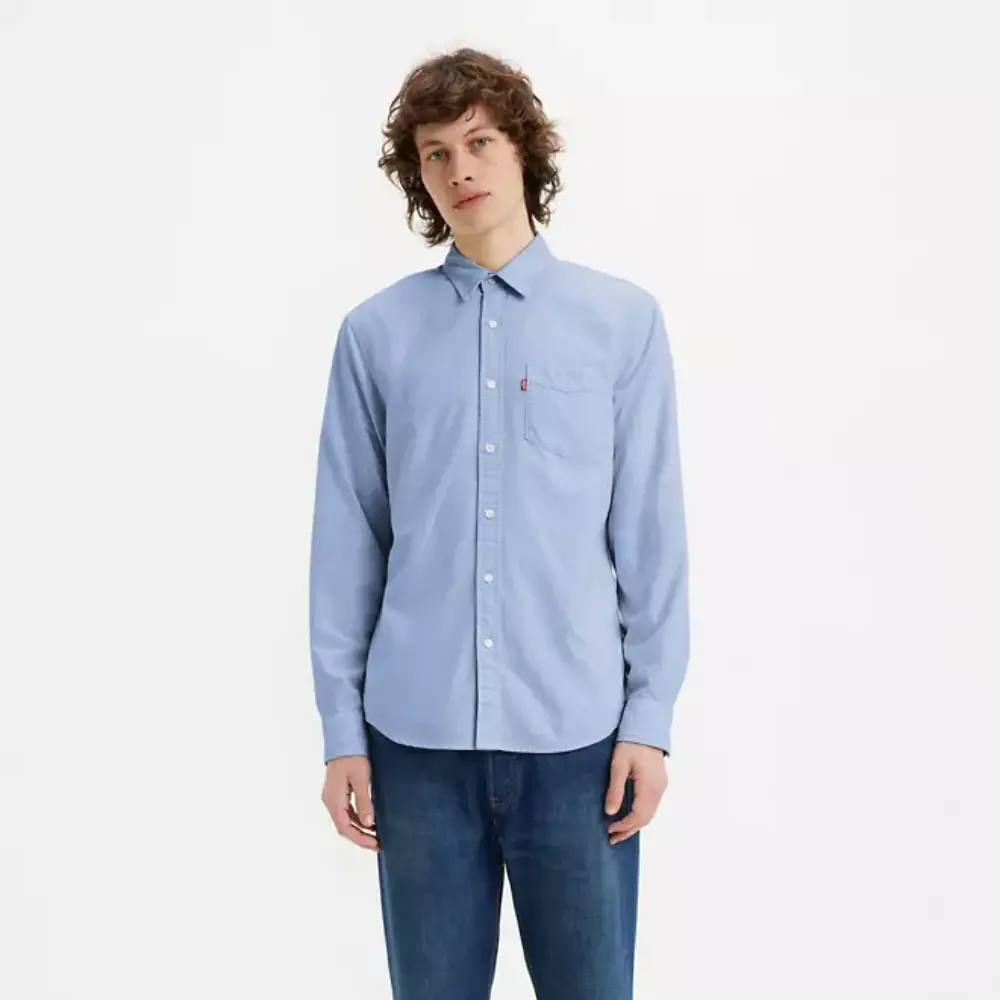 Con un diseño clásico y versátil de manga larga, esta camisa presenta un cuello abotonado y un cierre frontal abotonado. Su tejido de textura fina incorpora un bolsillo de parche en el lado izquierdo del pecho con una etiqueta de la marca, mientras que el corte recto y cómodo la convierte en una prenda ideal para combinar con pantalones casuales o jeans.