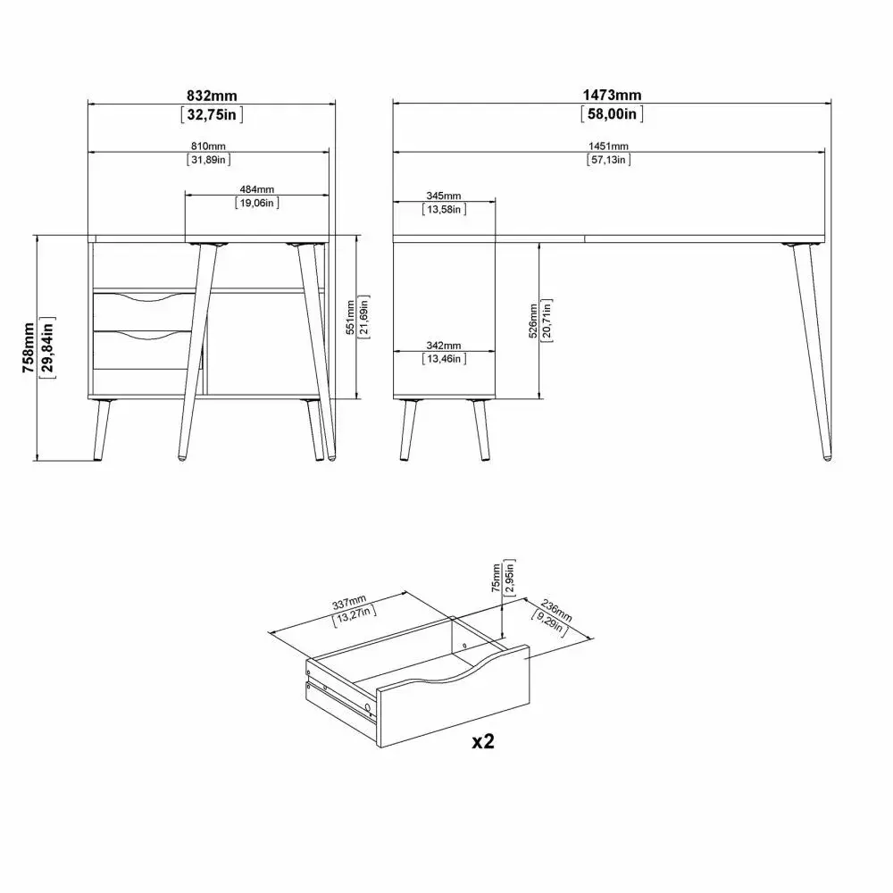 Con un diseño moderno y práctico, cuenta con dos gavetas para guardar documentos, papelería y objetos personales, mientras que los espacios de almacenamiento adicionales permiten tener todo lo que necesitas al alcance de la mano. Su estructura robusta y duradera garantiza estabilidad, y su estilo versátil se adapta a cualquier espacio.