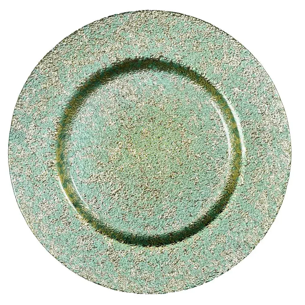 Fondo de plato de vidrio verde/dorado 33 cm