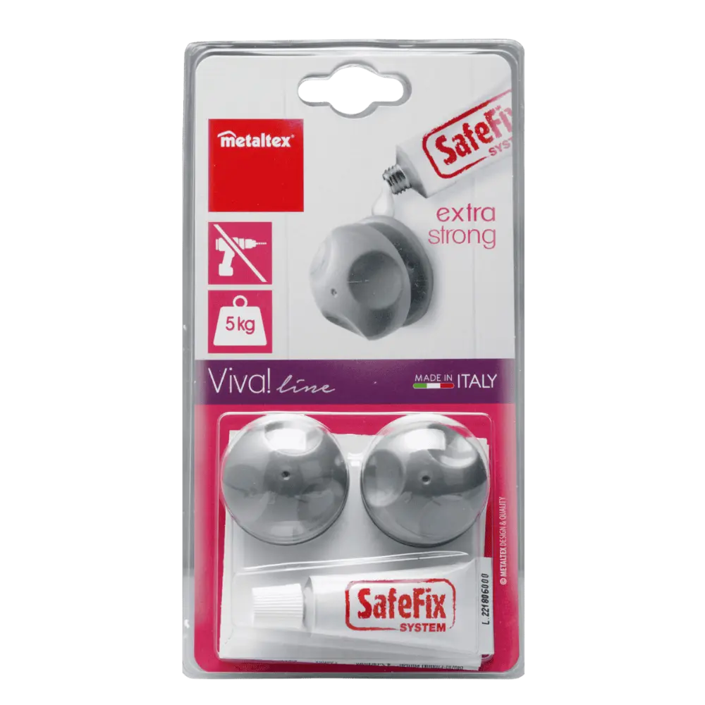 Este juego de soportes para pared presenta una estructura resistente y una base con el sistema de fijación Safe-Fix de Metaltex, diseñado para una instalación extrafuerte y fácil, sin necesidad de taladrar. Cada soporte tiene un diseño ergonómico que aguanta hasta 5 kg de peso, ideal para organizar objetos en el baño, la cocina o cualquier espacio del hogar.