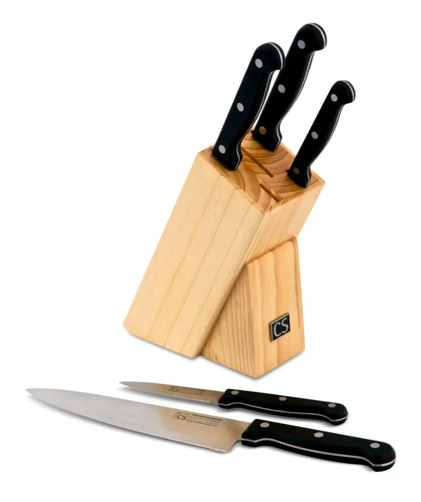 Incluye una variedad de cuchillos diseñados para tareas específicas, desde el corte de carnes y pescados hasta el picado de verduras, garantizando cortes precisos y eficientes en cada preparación. Cada cuchillo cuenta con una hoja afilada de alta calidad y un mango ergonómico que asegura un agarre cómodo y seguro. Perfecto para quienes buscan durabilidad y alto rendimiento en la cocina.