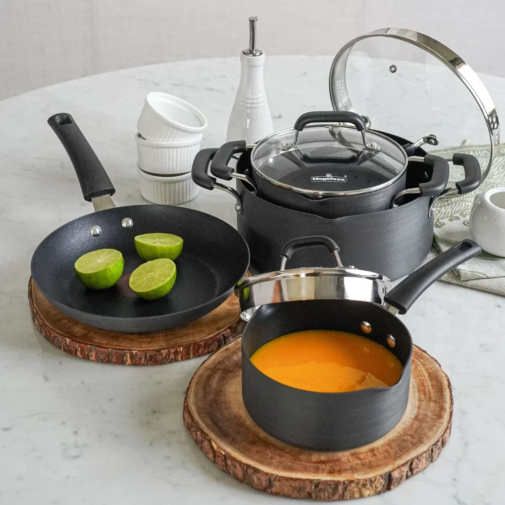 La línea Practix ThermoSpot de Magefesa combina funcionalidad y diseño, ideal para quienes buscan cocinar de manera eficiente. Estos artículos destacan por su tecnología ThermoSpot, un indicador visual que cambia de color cuando la sartén o el recipiente ha alcanzado la temperatura óptima para cocinar. Esto facilita lograr resultados precisos en tus preparaciones, evitando el sobrecalentamiento y garantizando un mejor sellado de los alimentos.