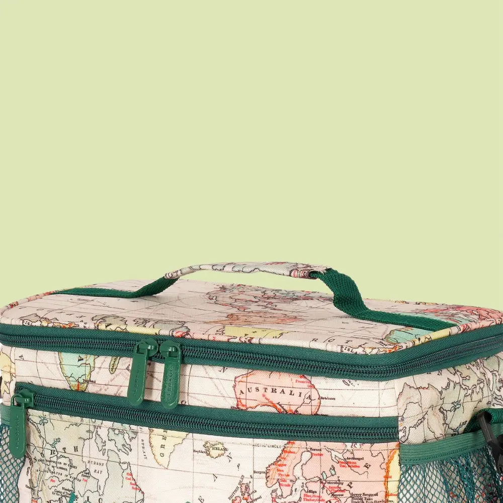Esta lonchera refleja el buen gusto tanto por los accesorios como por la comida que lleva dentro. Con una capacidad de 7,7 litros, es resistente, termoaislante y lavable, ideal para mantener tus alimentos frescos. Cuenta con un compartimento principal con cierre de cremallera, 2 bolsillos laterales con tejido de red y 1 bolsillo frontal con cremallera, manteniendo todo perfectamente organizado.