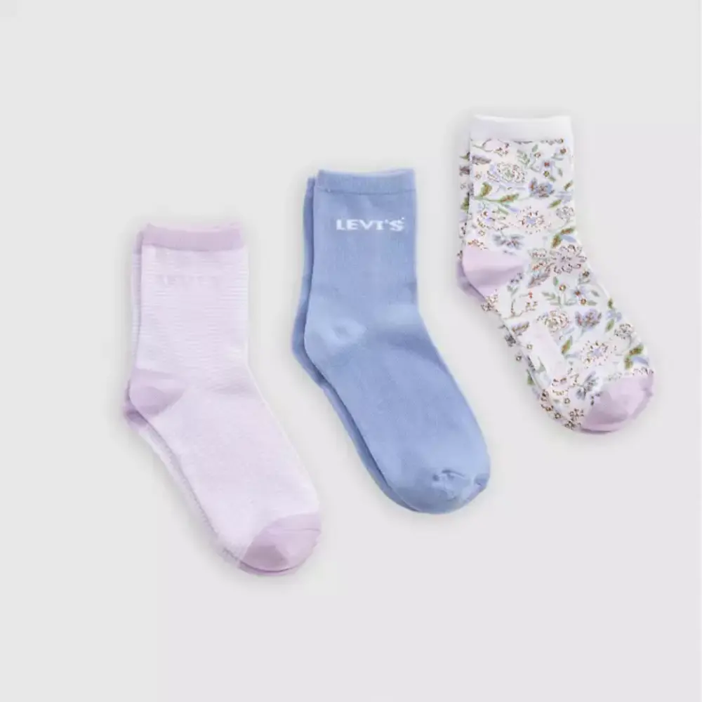 Este pack incluye tres pares de medias cortas, ofreciendo variedad y comodidad para el uso diario. Cada par presenta un diseño diferente, uno con un sutil tejido texturizado, otro con un discreto logo de la marca, y el tercero adornado con un delicado estampado floral. Fabricadas en un tejido suave y elástico, proporcionan un ajuste cómodo durante todo el día.