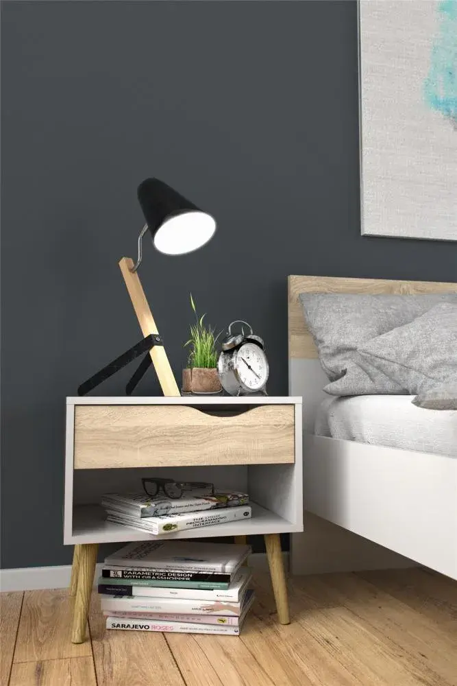Su diseño compacto ofrece un espacio ideal para mantener tus pertenencias organizadas y al alcance de la mano. El cajón proporciona almacenamiento adicional para diferentes objetos, mientras que la superficie superior es ideal para lámparas, decoraciones o el teléfono. Fabricada con materiales duraderos, esta mesa de noche es perfecta para complementar cualquier decoración.