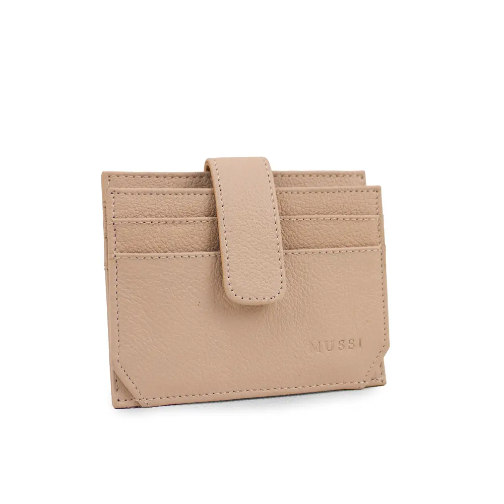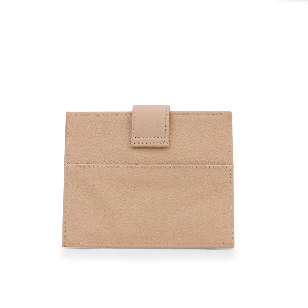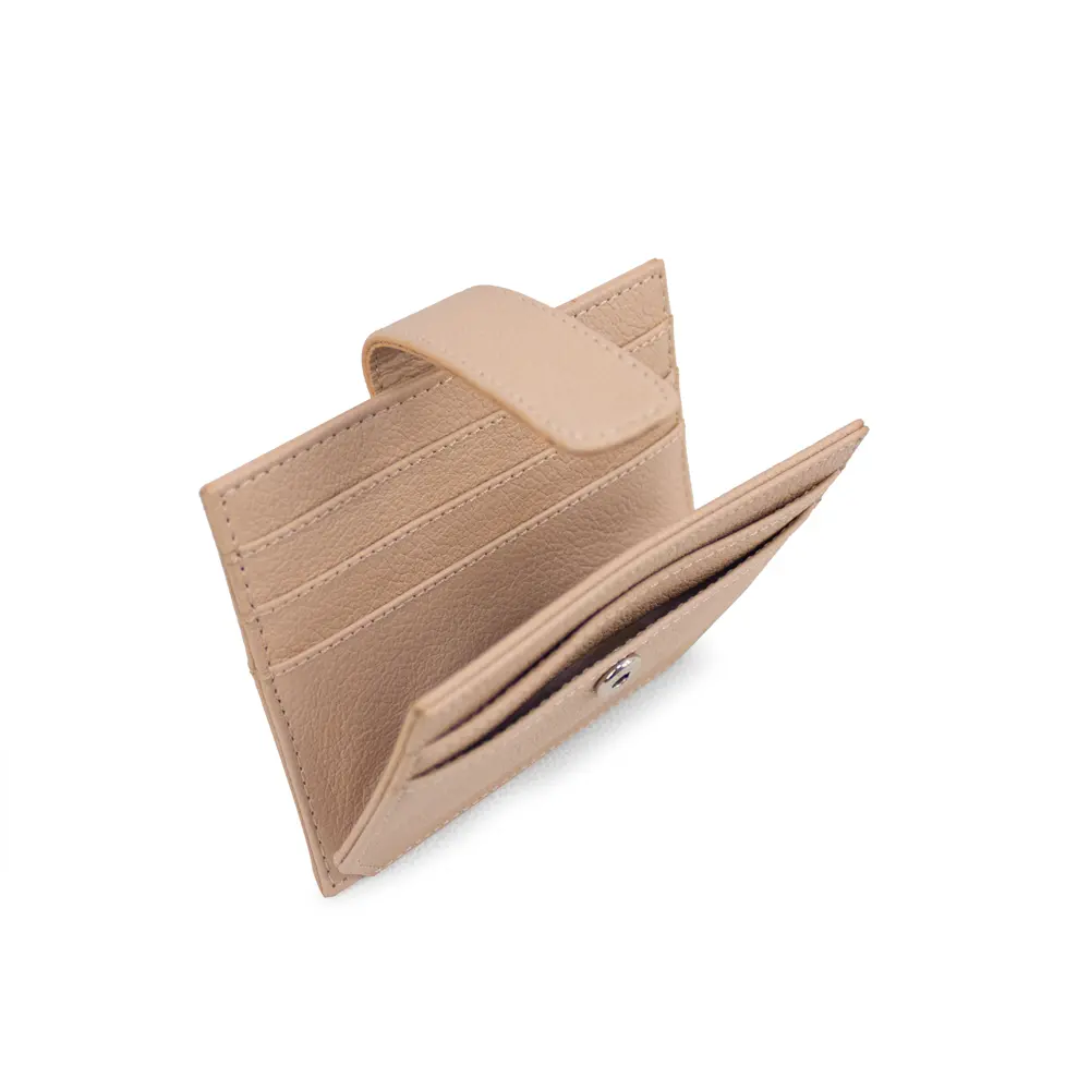 Su diseño delgado permite llevarlo cómodamente en cualquier bolsillo o bolso sin sacrificar espacio. Dispone de ranuras perfectamente distribuidas para tarjetas, así como un práctico compartimento con broche que asegura tus pertenencias con estilo. El acabado texturizado aporta un toque de distinción, mientras que los detalles cosidos demuestran un cuidado artesanal.