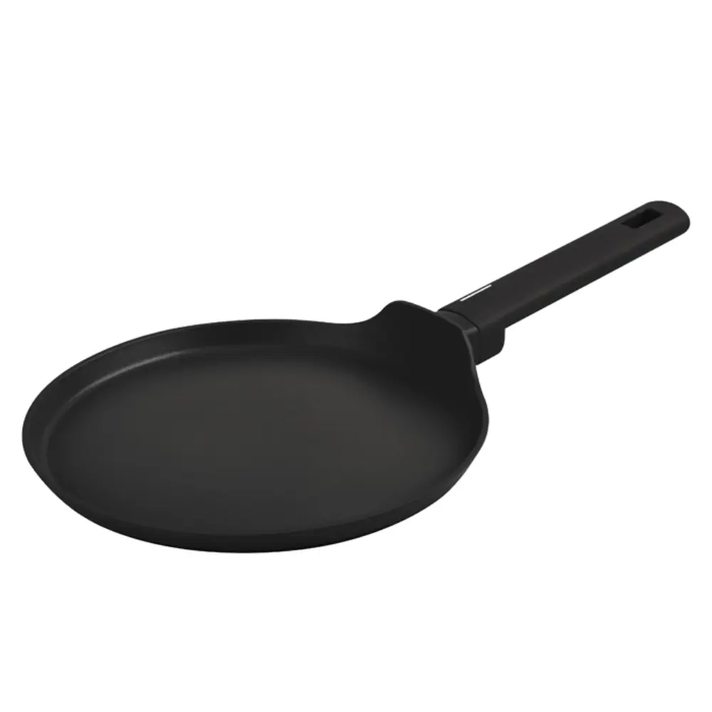 Esta plancha presenta una superficie circular con un recubrimiento antiadherente, ideal para cocinar panquecas, tortillas y otros alimentos de manera uniforme y sin que se peguen. Su mango ergonómico y resistente al calor proporciona un agarre cómodo durante el uso, mientras que el diseño ligero la convierten en un utensilio esencial para cualquier cocina.