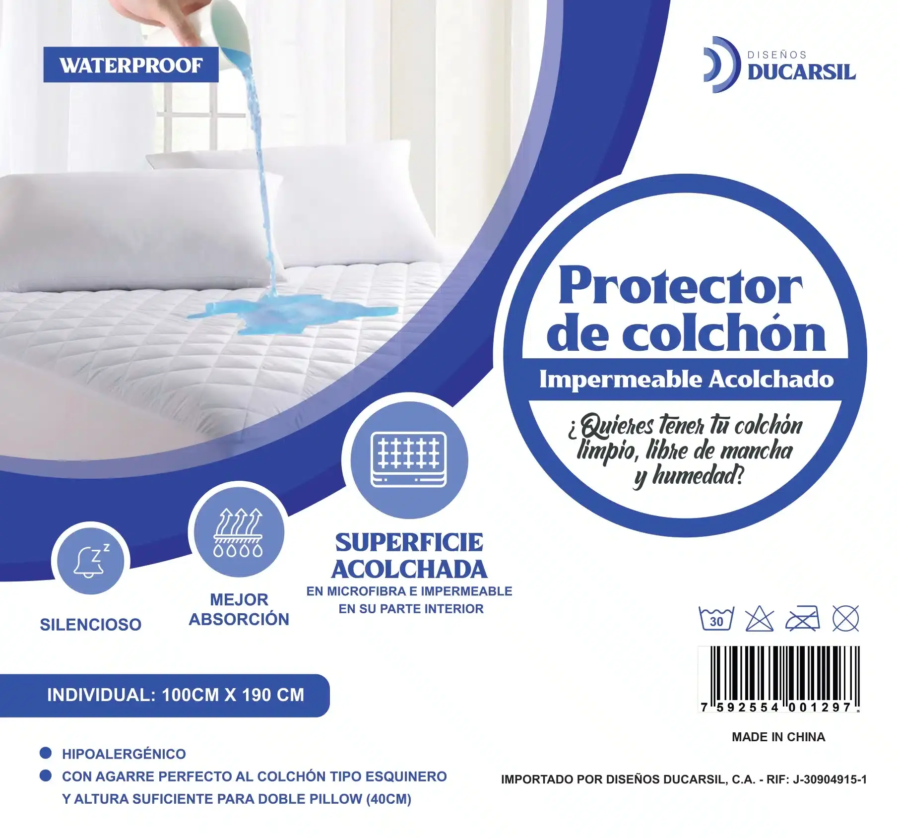 Protector de colch?n individual acolchado e impermeable 100% microfibra