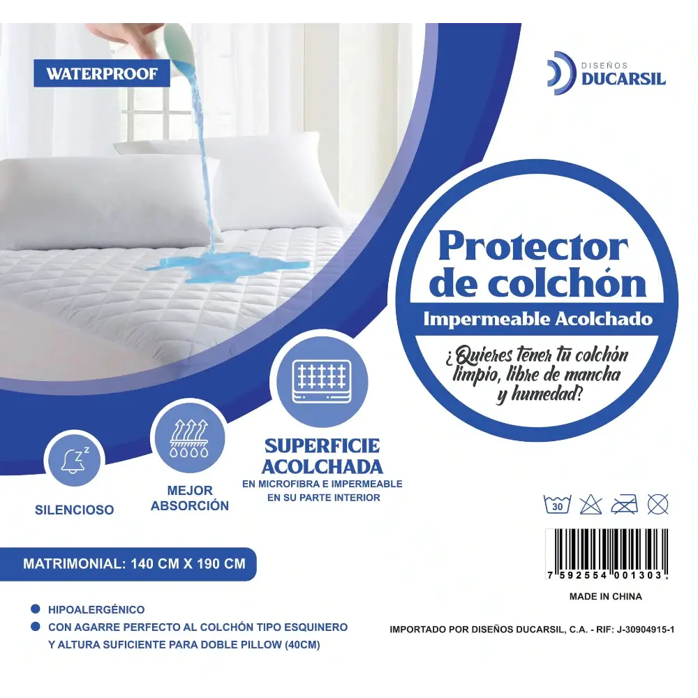 Protector de colchón acolchado Matrimonial 140×190 cm