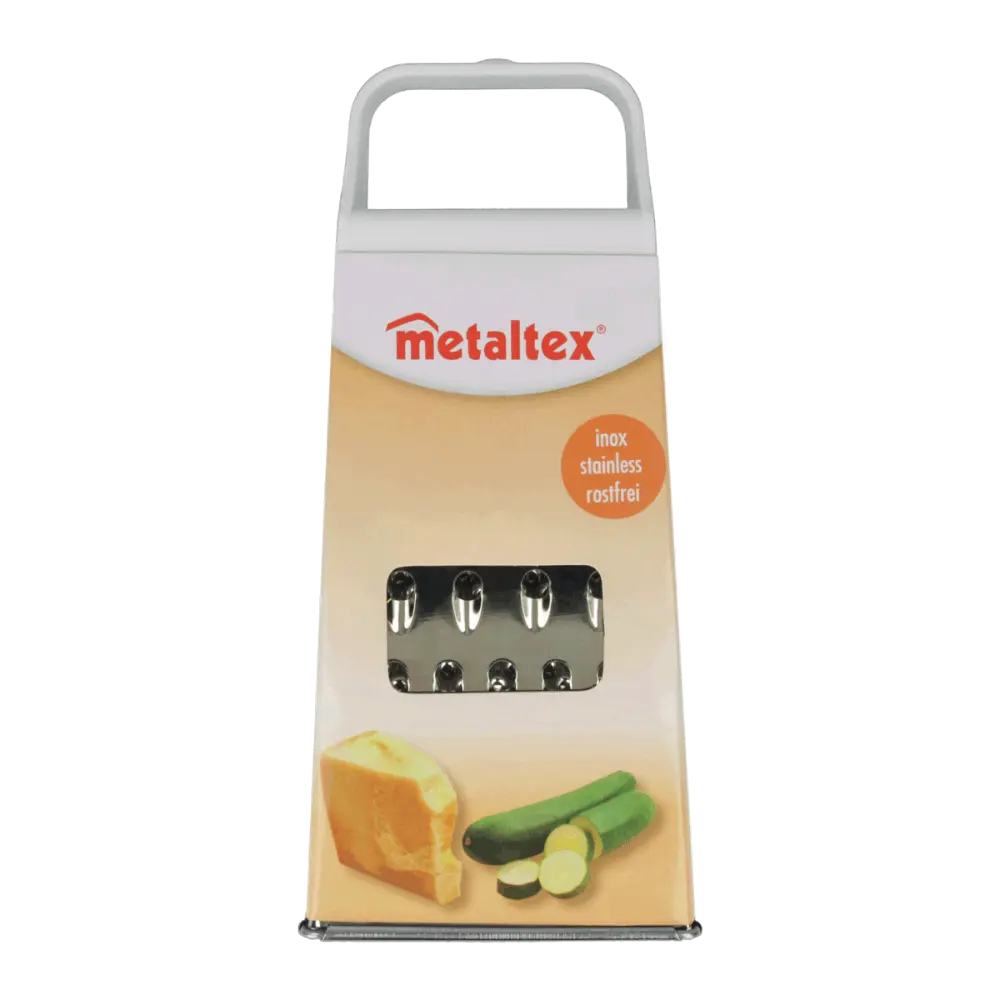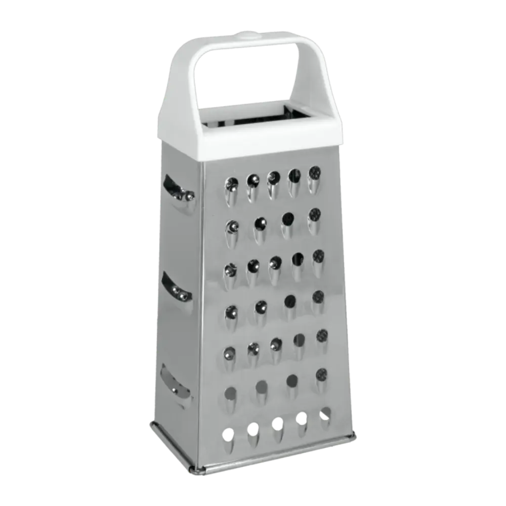 Con su estructura en forma de pirámide, ofrece múltiples opciones de corte, desde ralladuras finas hasta gruesas, ideales para quesos, verduras, frutas y especias. Su base estable garantiza seguridad al usarlo y su tamaño compacto facilita su almacenamiento en cualquier cocina. Perfecto para quienes buscan un rallador eficiente y duradero.