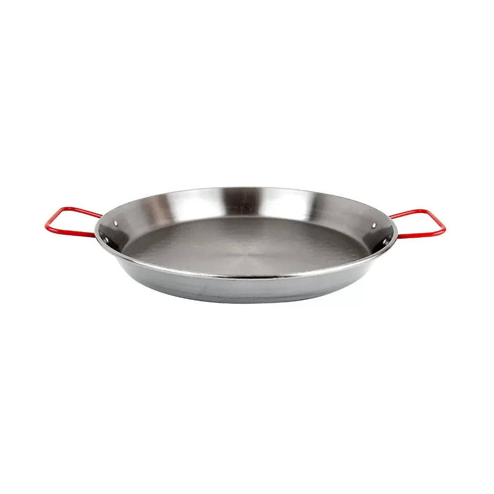 Perfecto para preparar una auténtica paella española, gracias a su diseño amplio y plano que asegura una distribución uniforme del calor. Fabricada con materiales de alta calidad, como acero inoxidable o aluminio, es ideal para cocinar arroz, mariscos, carnes y vegetales, logrando la textura y sabor perfectos en cada plato.