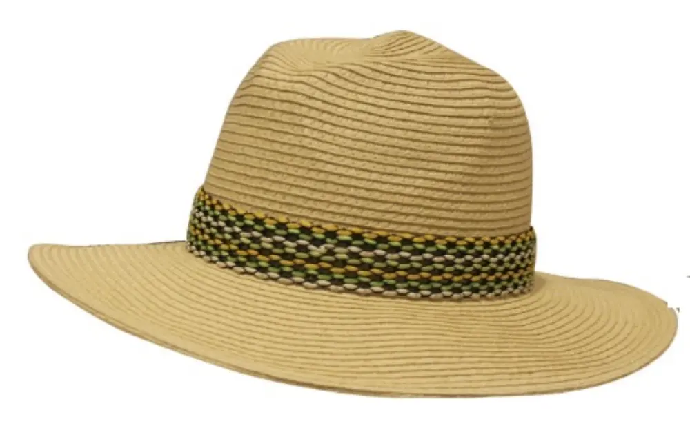 Confeccionado en materiales ligeros, proporciona una excelente protección contra los rayos UV mientras mantiene una sensación de frescura. Su diseño amplio y elegante, con un borde flexible y una cinta decorativa, añade un toque de distinción a cualquier conjunto de verano. Ideal para la playa, vacaciones o paseos al aire libre.