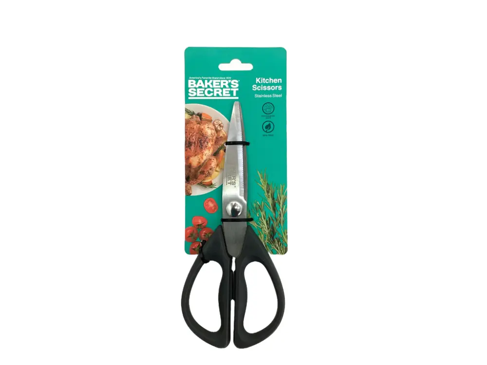 Con cuchillas de acero inoxidable de alta calidad, esta tijera es ideal para cortar todo lo que necesites de manera precisa y segura. Su diseño ergonómico con mangos antideslizantes garantiza un agarre cómodo y controlado, incluso durante largos períodos de uso. Resistente y fácil de limpiar, es perfecta para trabajos de cocina diarios.