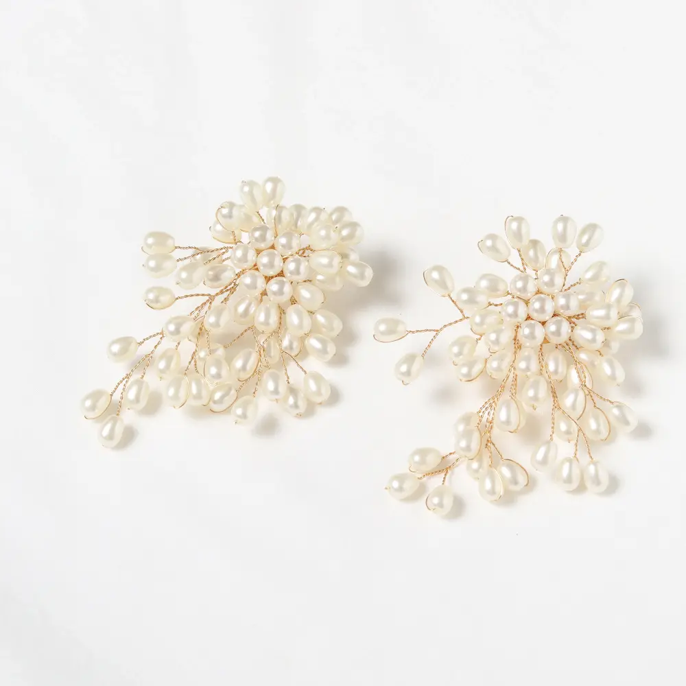 Con un diseño elegante, estos zarcillos presentan una agrupación de pequeñas perlas con una superficie lisa, interconectadas por delicados hilos que crean un efecto racimo, mientras que su diseño voluminoso y sofisticado los convierte en un accesorio distintivo, perfecto para añadir un toque de glamour y elegancia a cualquier look.